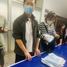 为同学们发放了防疫物资,物资包括免洗凝胶和口罩。免洗凝胶每宿舍一瓶,用于日常手部清洁消毒。口罩每人五个,用于日常佩戴。在大家安静有序的领取中,物资很快就被送到了同学们的手上,发挥了各自的作用。