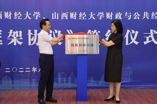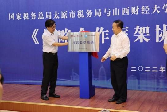党委常委、副校长沈沛龙,国家税务总局山西省税务局党委委员、副局长马红岩等校税双方领导出席签约仪式并为共建基地揭牌。