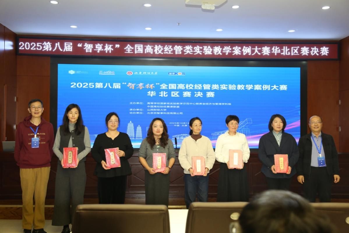 “智享杯”全国高校经管类实验教学案例大赛是经管类实验教学领域的权威赛事。此次获奖,是计量经济学教学团队践行“科研赋能教学”理念、推动“学习中国案例”教学改革的一次成功实践,彰显了学院在创新人才培养模式上的不懈努力与雄厚实力。学院将继续坚持“以赛促教、以赛促改”,不断提升教学质量,为学校高质量发展贡献更多力量。