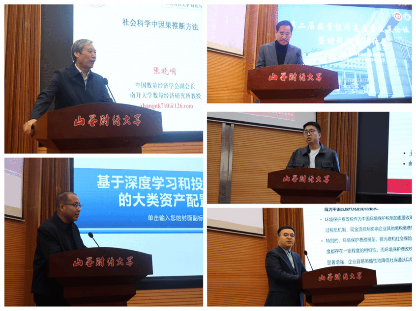 李爱忠副院长、康琛宇老师、任星宇老师先后进行分享。孟教授以“基于深度学习和投资者情绪的大类资产配置优化”为题,希望通过精细的资产管理和战略性的资产配置,使得投资者可以在长期内获得更稳健的回报;李老师就“高维因果推断及其在金融经济学中的应用”进行了发言。他首创性地提出了非随机实验下基于推理的多模态高维因果推断新范式;康老师就“当代计量经济学模型体系介绍”进行了一场内容丰富的演讲。他从不同角度对计量经济学模型进行了分类,包括按因变量特征和按熟悉程度的分类方法,为大家提供了一个清晰的模型体系框架;任星宇老师围绕税费替代的主题进行了分享,深入探讨了环境保护费改税对企业社保遵从的影响。值得一提的是,任老师在其研究中,以保护劳动者权益为着眼点,创新性地探讨了如何平衡环境保护费改税与企业社保遵从之间的税费替代关系。