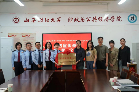 与太原市小店区税务局共同举行“税法宣传基地”揭牌仪式。学院党委书记阎晓莉、党委副书记李菲、团委书记、就业联系人、辅导员代表,山西省税务局政策法规处处长周海燕、太原市小店区税务局副局长牛彤娟、法制股股长谢俊峰、组织人事股副股长薛敏、税政股邹亿杰等人参加仪式,并座谈交流。会议由学院党委副书记李菲主持。